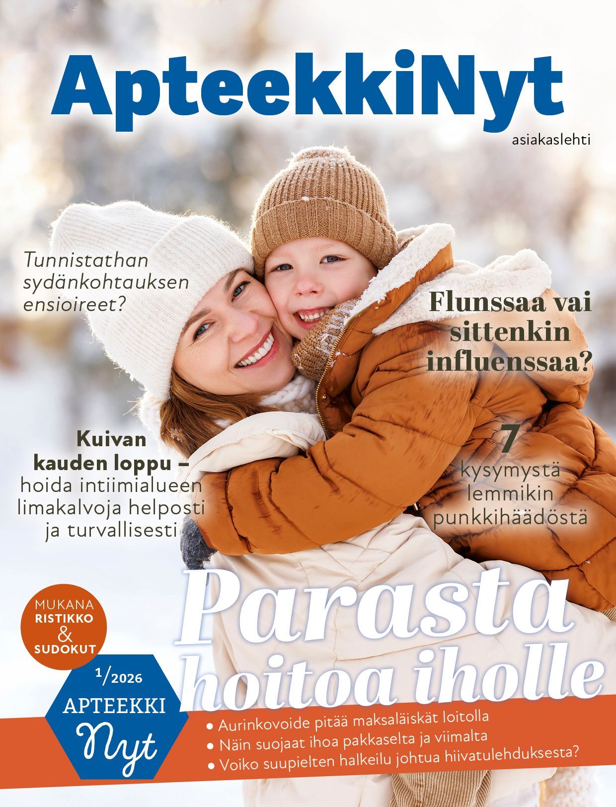 ApteekkiNyt-lehti ilmestyy kuusi kertaa vuodessa. ApteekkiNyt on apteekkimme oma asiakaslehti, joka sisältää luotettavaa ja ajankohtaista tietoa terveydestä sekä hyvinvoinnista. Lehdestä löydät myös kuukausittain vaihtuvat asiakasedut. Lehden saat apteekistamme, jos se ei kolahda postiluukustasi!